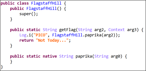 paprika( )는 native code로서, MainActivity에서 로드된 hellojni.so 내부에 선언된 함수다.