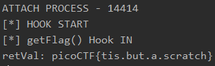 droids3 후킹 결과 성공적으로 후킹이 되었고, yep( )의 반환값으로 picoCTF{tis.but.a.scratch} Flag값을 얻을 수 있다.