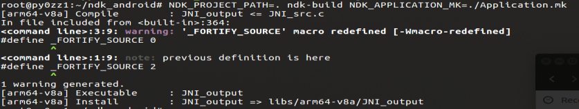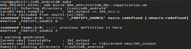 NDK_PROJECT_PATH=. ndk-build NDK_APPLICATION_MK=./Application.mk위 명령어로 소스코드를 빌드하면 libs/[ARCH]/위치에 위에서 설정했던 LOCAL_MODULE 값으로 바이너리가 생성된다.