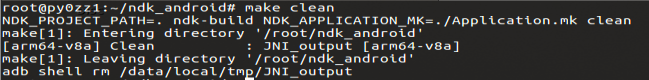 [그림 10] make clean - Binary Delete+ADB shell rm make clean을 하면 로컬에 있는 바이너리와 Android기기에 있는 바이너리를 삭제한다.