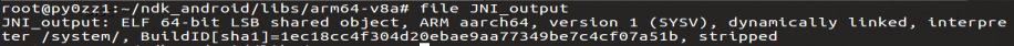 [그림 4] ndk-build 정상적으로 빌드된 모습은 위와 같으며, 나는 libs/arm64-v8a/JNI_output으로 빌드된 바이너리가 생성됐다.