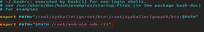 나는 export PATH="$PATH:/root/android-ndk-r21"이 된다.