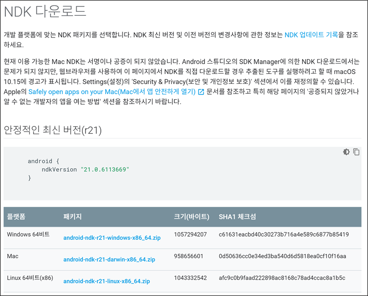 먼저 아래 링크에서 최신버전의 Android NDK를 다운로드 한다.