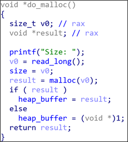 size는 malloc( )으로 할당할 크기가 저장되고, heap_buffer는 할당된 Chunk의 주소가 저장된다.