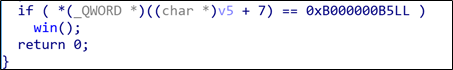 그리고 win( ) 실행 조건은 *(v5+7)위치에 0xB0000000B5가 저장되어 있어야 한다.